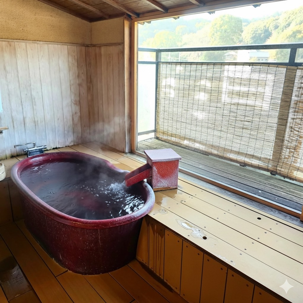 今回宿泊したのは、露天風呂付き客室。 陶器のお風呂が設置されていました。同じ客室タイプで檜風呂のお部屋もあるそうです。